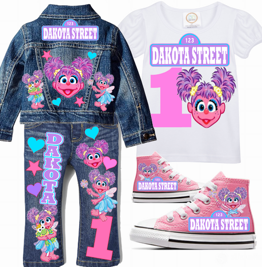 Abby Cadabby Girls denim outfit-Abby Cadabby Denim Set-Abby Cadabby Birthday outfit-Abby Cadabby Jean outfit