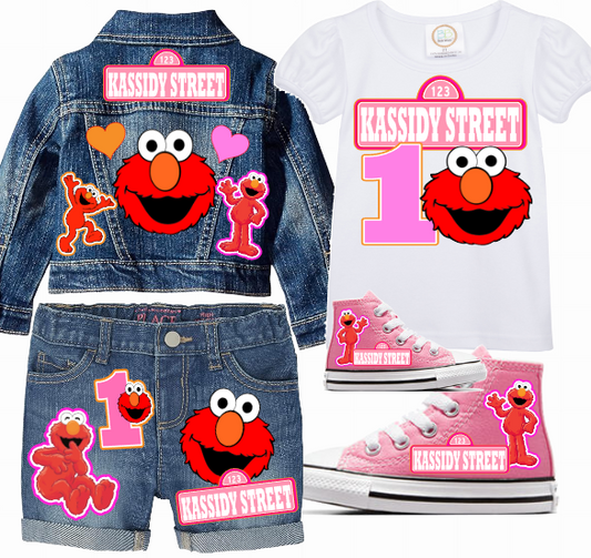 Elmo Short Set-Elmo Birthday outfit-Elmo denim Birthday outfit