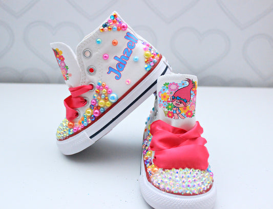 Poppy Troll shoes- Poppy Troll bling Converse-Girls Poppy Troll Shoes-Poppy Troll shoes