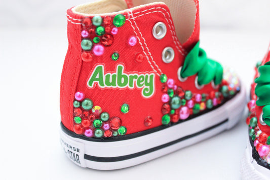 Strawberry shoes- Strawberry bling Converse-Girls Strawberry Shoes-Strawberry Converse