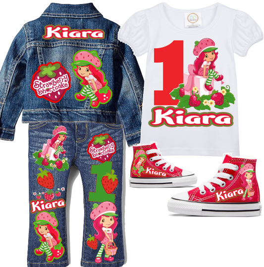 Strawberry Shortcake Girls denim outfit-Strawberry Shortcake Denim Set-Strawberry Shortcake Birthday outfit-Strawberry Shortcake Jean outfit