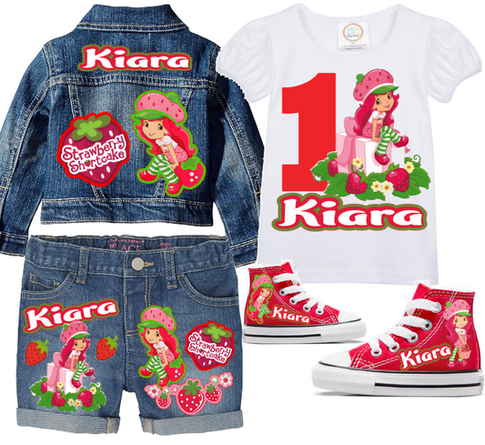 Strawberry Shortcake Short Set-Strawberry Shortcake Birthday outfit-Strawberry Shortcake denim Birthday outfit