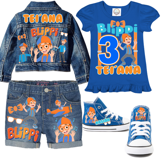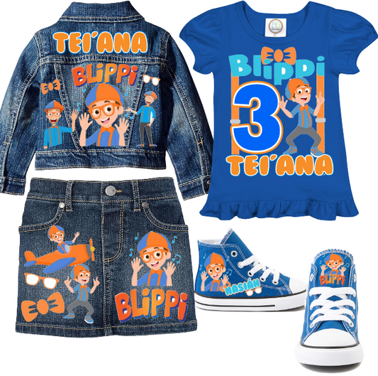 Blippi Girls denim outfit-Blippi Denim Set-Blippi Birthday outfit-Blippi Jean outfit