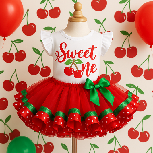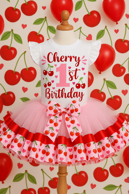 Cherry tutu set- cherry outfit- cherry dress- cherry birthday outfit