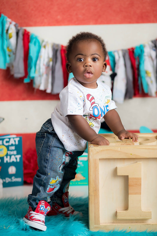 Cat in the Hat Denim Set-Boys Cat in the hat denim set-Cat in the hat Birthday outfit-Cat in the hat boys outfit