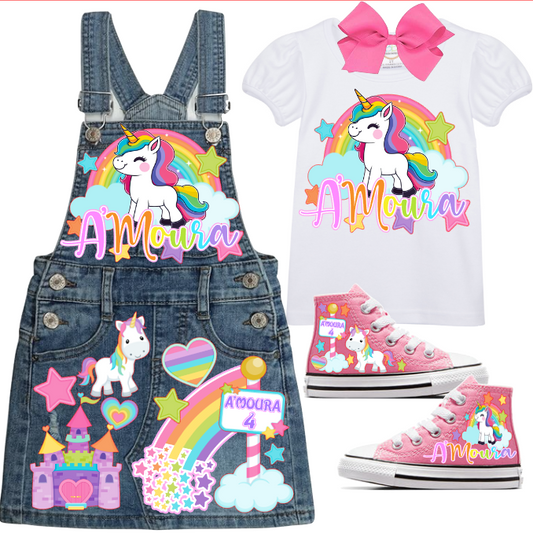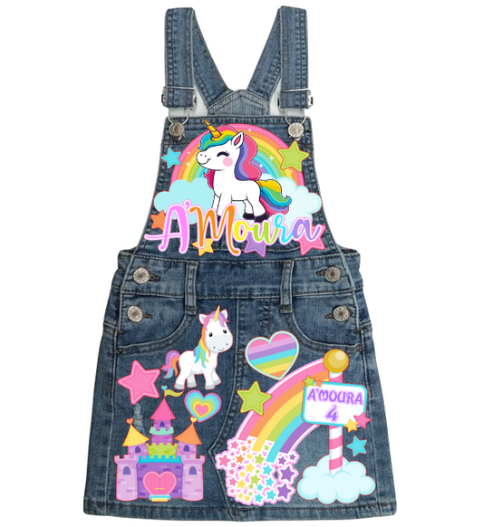 Unicorn Skirt Overalls-Unicorn Birthday Overalls-Unicorn Birthday outfit
