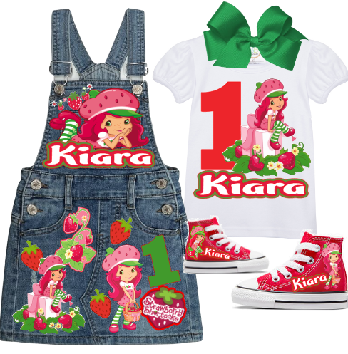 Strawberry Shortcake Skirt Overalls-Strawberry Shortcake Birthday Overalls-Strawberry Shortcake Birthday outfit