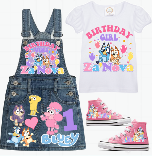 Bluey Skirt Overalls-Bluey Birthday Overalls-Bluey Birthday outfit