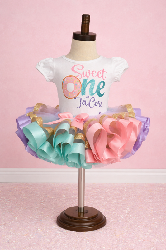Donut Tutu set- Donut outfit-Donut dress- donut tutu-Rainbow Donut tutu set-Sweet one tutu set