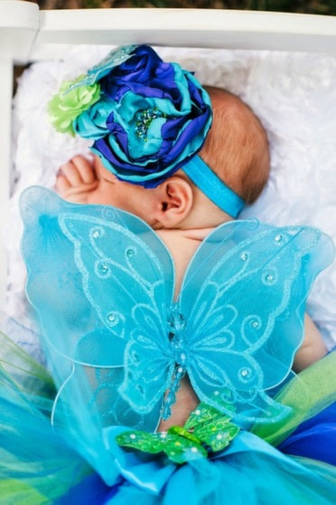 This set features a pair of Butterfly Wings,A butterfly inspired tutu,and a matching beautiful hairpiece.