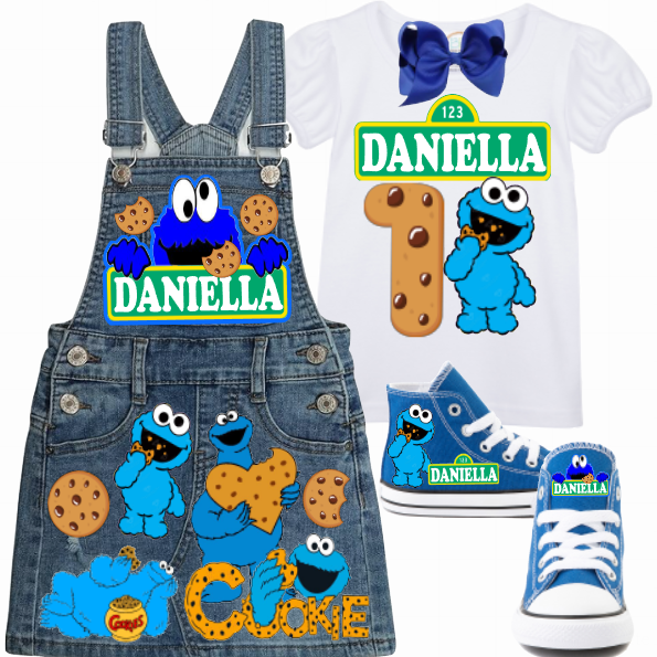 Cookie Monster Skirt Overalls-Cookie Monster Birthday Overalls-Cookie Monster Birthday outfit