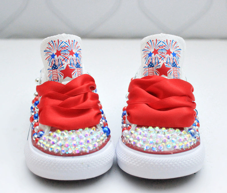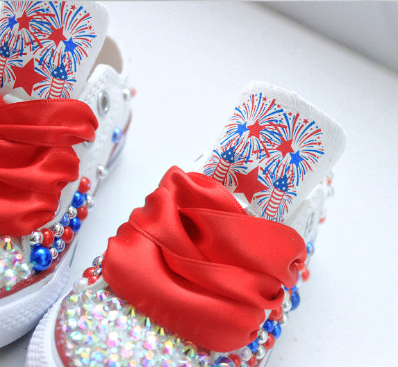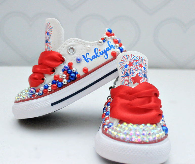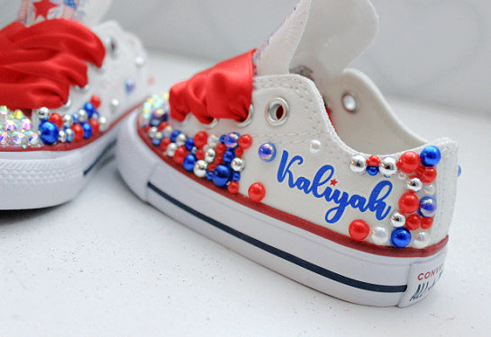 4th of july shoes- 4th of july bling Converse-Girls 4th of july Shoes