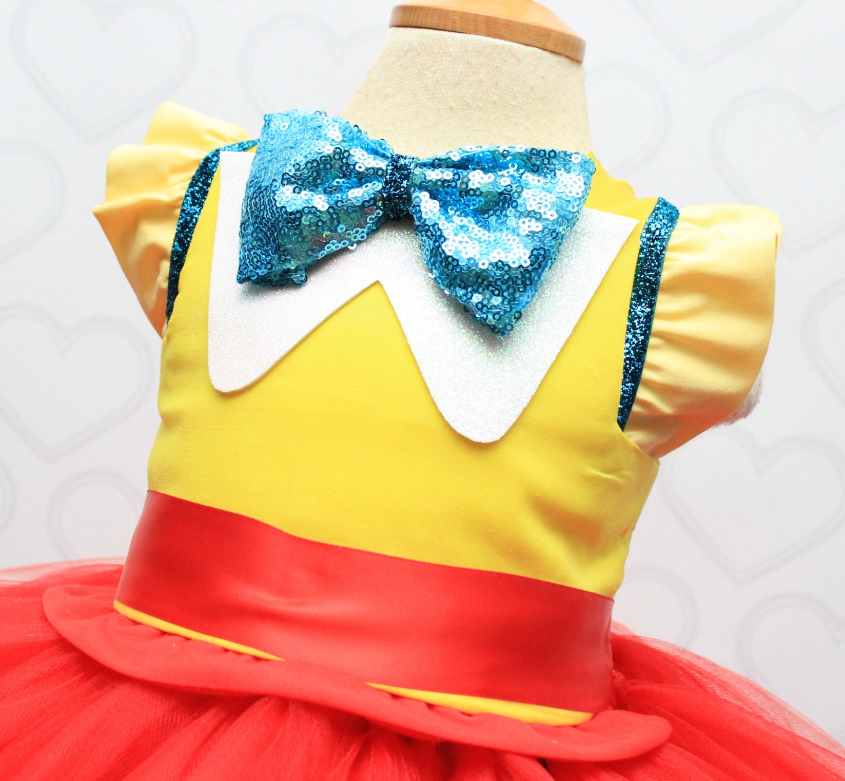 Our Tweedle dee and Tweedle Dee tutu dress is so adorable and perfect for your little one! This dress is embellished with custom handmade accents,ruffles,trim and more! A perfect costume for halloween and birthdays!