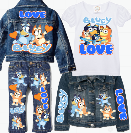 How cute is this Bluey Denim set?! Perfect for your little ones birthday, photoshoot, or special event!