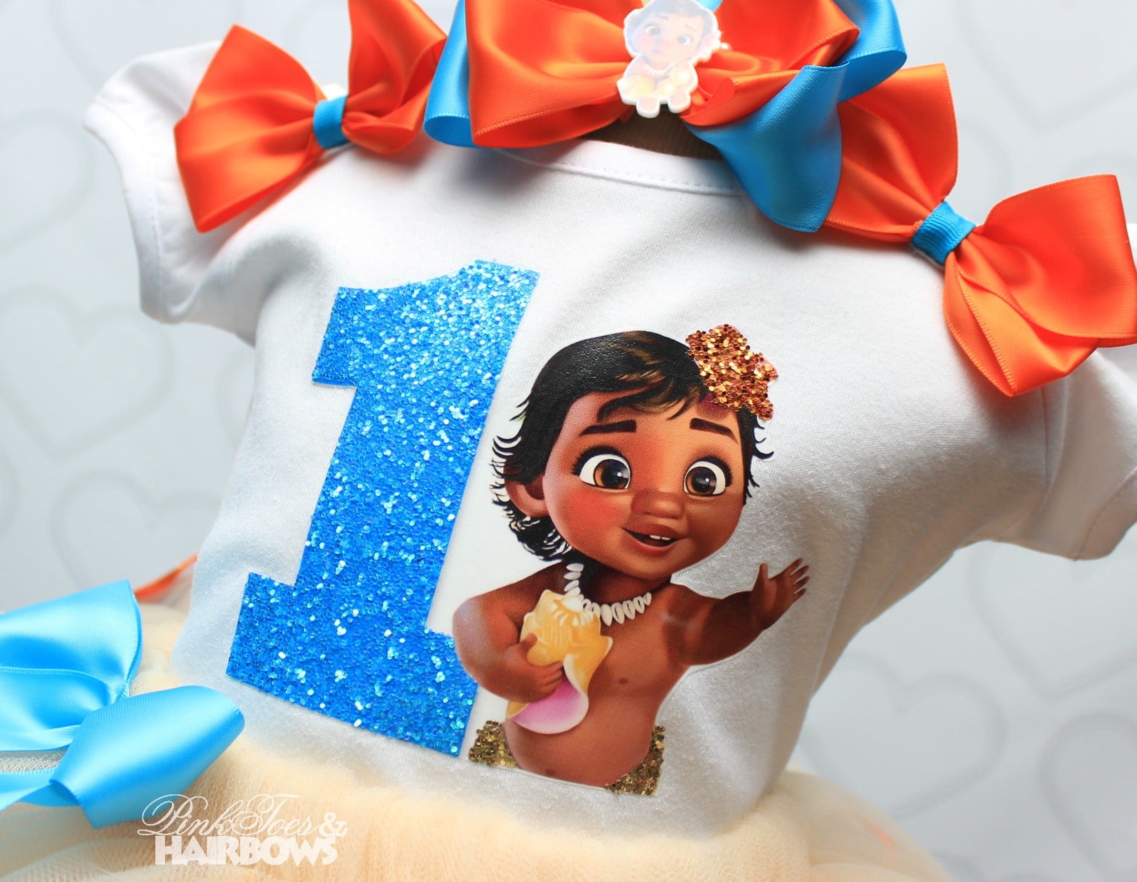 This set is perfect for your next Moana Party or photoshoot! Set includes a 4 layer Tan tutu trimmed in coordinating ribbon,and a custom Glitter tee.
