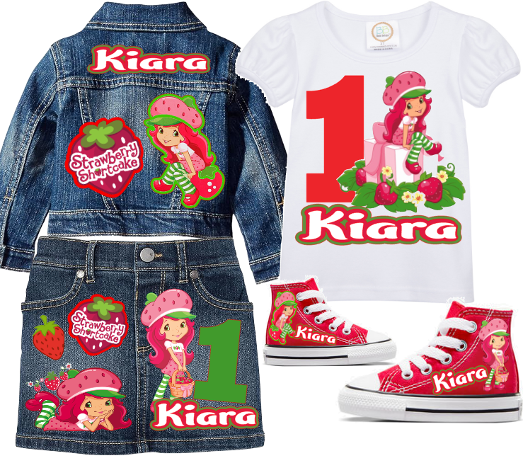 Strawberry Shortcake Skirt Set-Strawberry Shortcake denim outfit-Strawberry Shortcake Birthday outfit