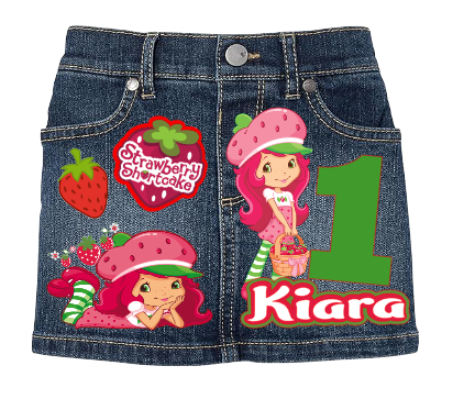 How cute is this Strawberry Shortcake Denim Skirt set?! Perfect for your little ones birthday, photoshoot, or special event!
